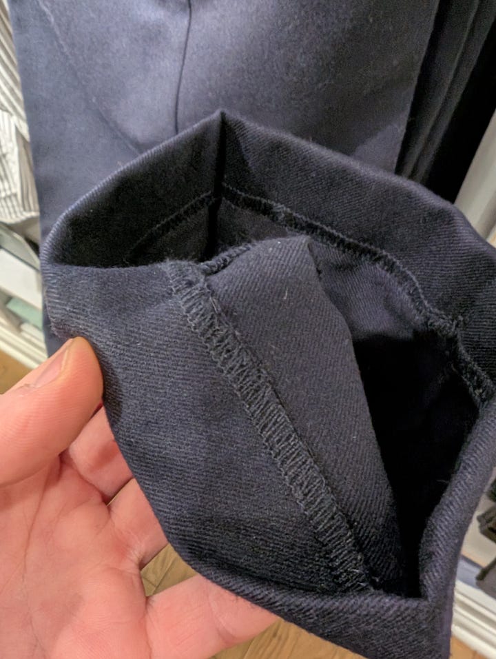 Something else to talk about was the cardigans, they were well built in construction although the cardigan I had found on the rack had only two holes stitched through instead of four. I checked the others and saw it was a QC flaw again. Cardigan buttons often get stretched and are subject to a fair amount of wear and tear so seeing this was incredibly disappointing. Once again, the styling and material choices were not the issue—the execution was. Talking about the stitching on the garment, all of the seams were done well with no exposed material. The cuffs were also rolled in leaving little room for snags and pulls. It may be worth getting the buttons resewn by a tailor if you find many of these items on sale as the material quality is quite good for the price, the buttons just seem to be a letdown.