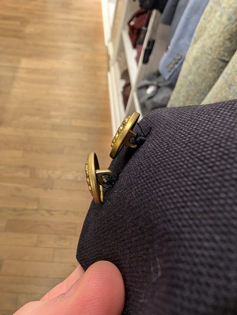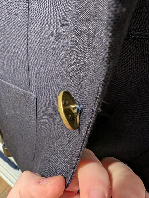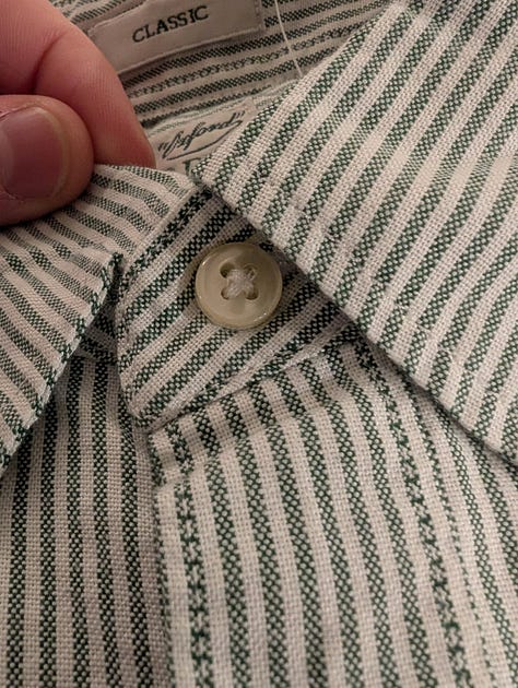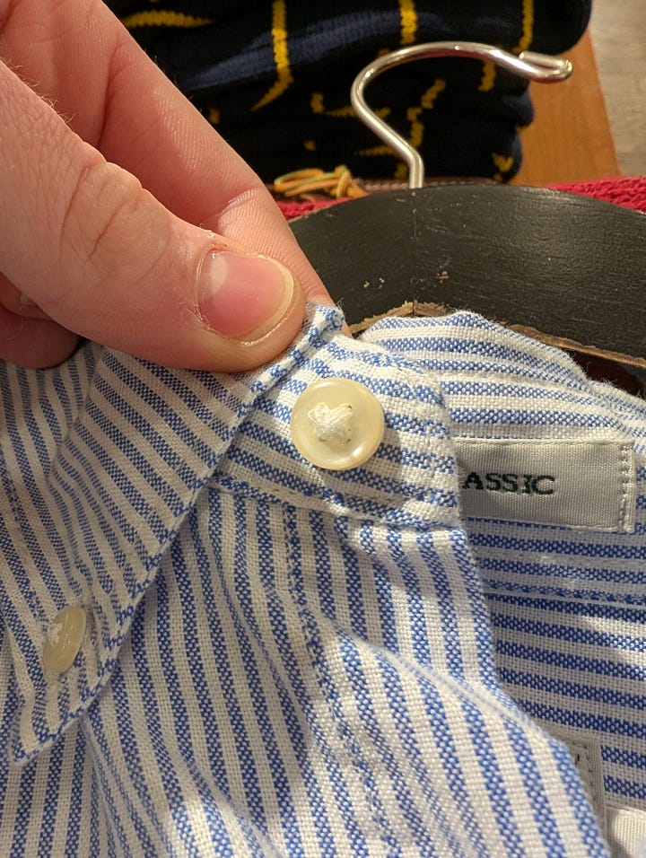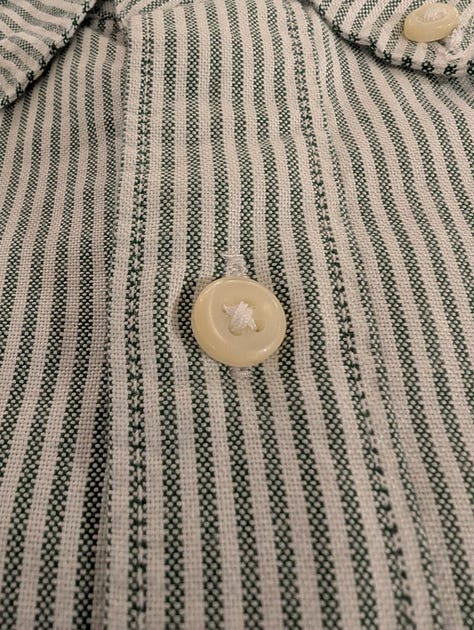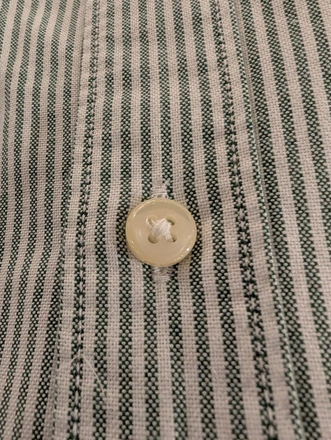 Now that I have gotten the good stuff out of the way, I have to address the theme of this review and the letdown of these shirts. When I picked up the oxford shirt off of the rack I took a look at some of the buttons and noticed some of the poorest stitching I have ever seen on a new shirt (shown below). I thought it could be a problem with the specific shirt so I looked at a few more, and a few more; Nope, in almost every shirt I noticed a button problem. This traces back to a few weeks earlier when I received a couple of the shirts in the mail and assumed mine was a one off. J. Crew nailed almost everything else about the basics in this collection except the stitching, and that pattern does continue. I conclude that the bones of their OCBD offering is good but only if they can fix their quality control and manufacturing issues.