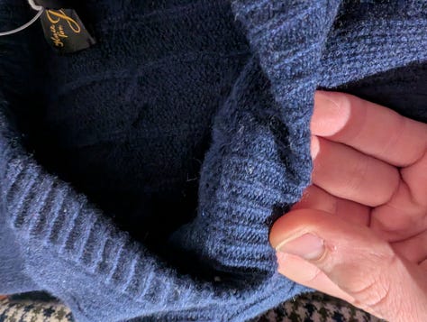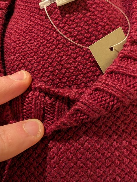 “Overall the basket stitch sweater seems well built although I would have liked to see some extra consideration taken with the neckline choice.”