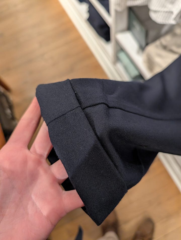 Keeping the positivity was the J. Crew cashmere line. I was deeply impressed with how well they had constructed much of the cashmere line. The neckline has a flat-felled seam that keeps the edges from being exposed, wrapping them back under the torso fabric. This shows attention to detail from the brand and is a highlight of the collection. The cashmere was soft and plush as well as heavily marketed around New York Fashion Week although it seems they had plenty of stock left and have been on deep sales so perhaps they didn’t sell as well as they predicted, although I am not sure why as the quality was fantastic.